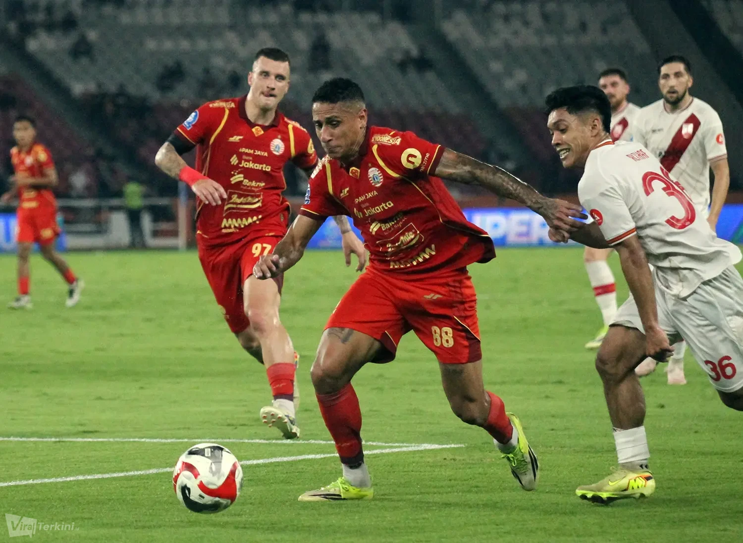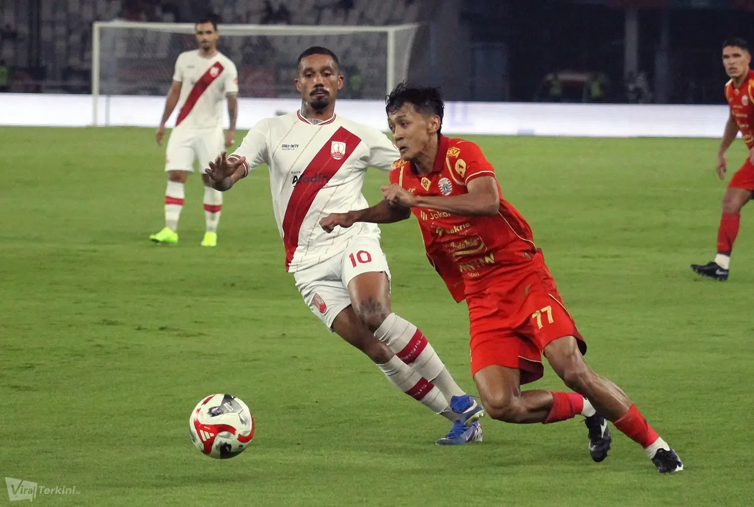 Persija vs Persis Solo. Foto MAK Viralterkini.id, Jakarta – Inilah aksi yang luar biasa Persija di lanjutan kompetisi BRI Super League dengan mengasak Persis Solo dengan skor telah 4-0 di Stadion GBK Senayan Jakarta, Senin (27/04).