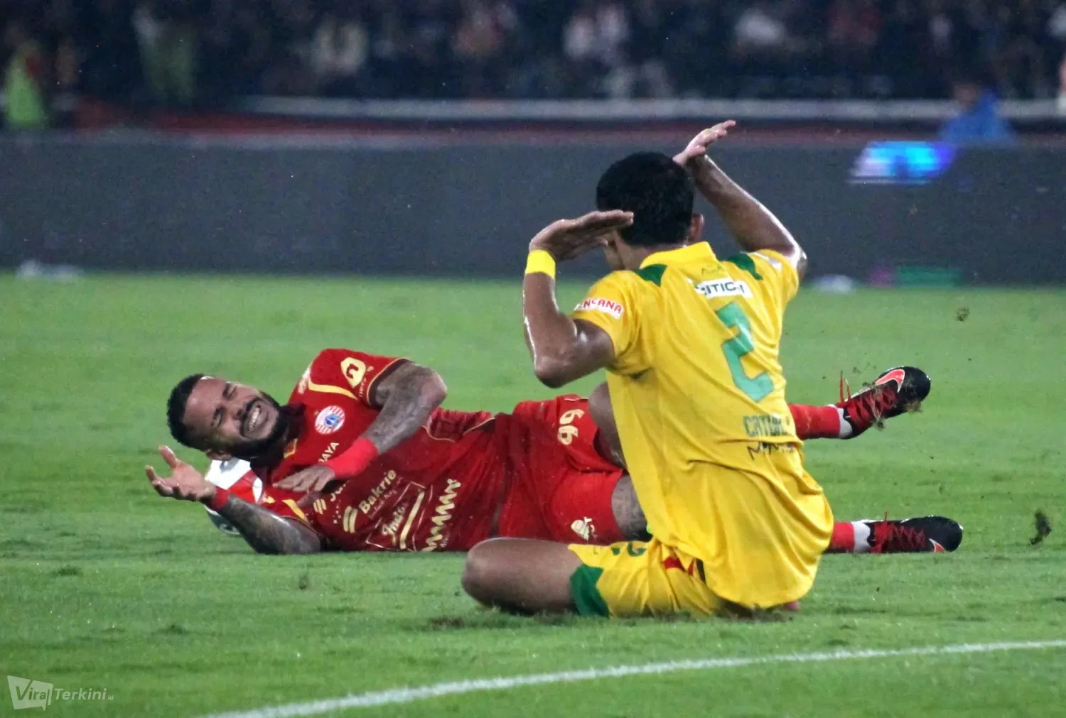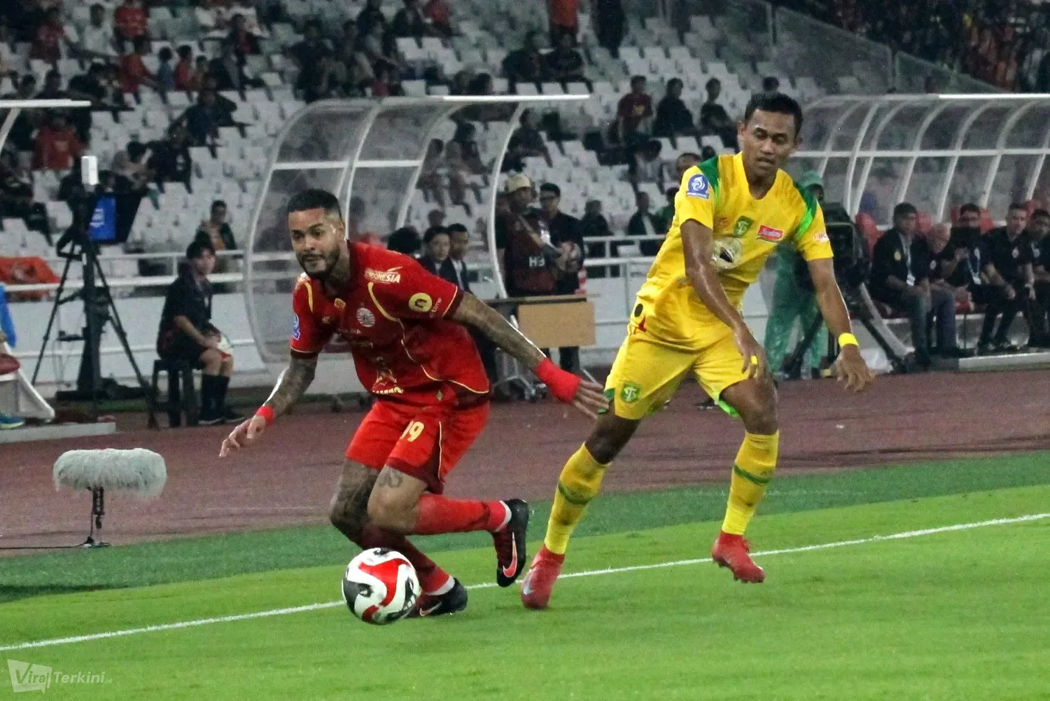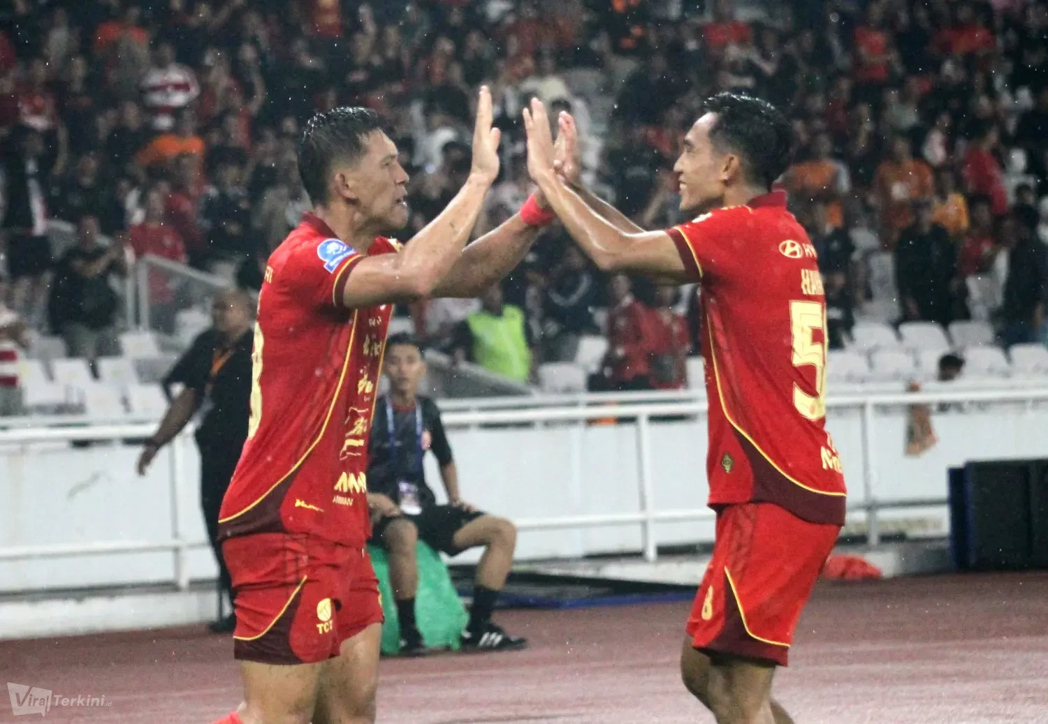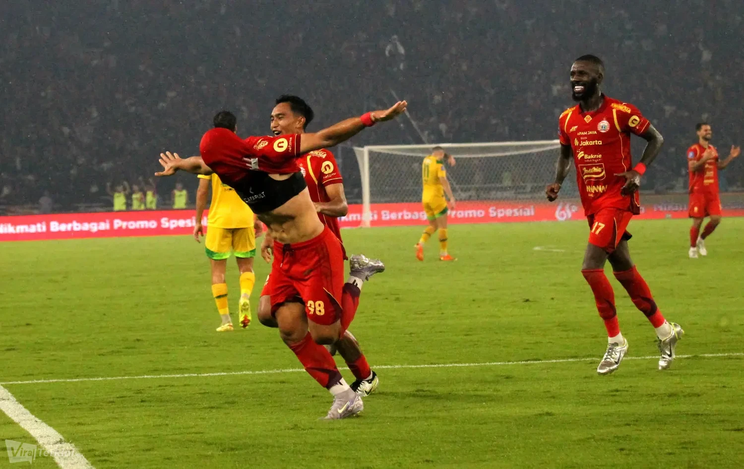 Kedua pemain Persija yang mencetak gol ke gawang Persebaya yakni Allano Brendon De Souza Lima dan Eksel Timothy Joseph Runtukahu di Stadion GBK Senayan Jakarta, Sabtu (11/04) malam. Foto : Viralterkini.id/MAK Viralterkini.id, Jakarta – Persija Jakarta menunjukkan performa impresif saat menaklukkan Persebaya Surabaya dengan melumat dengan skor telak 3-0 dalam lanjutan pekan ke-27 Super League 2025/2026 di Stadion GBK Senayan Jakarta,Sabtu (11/4).