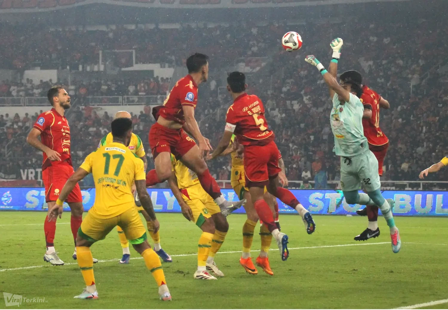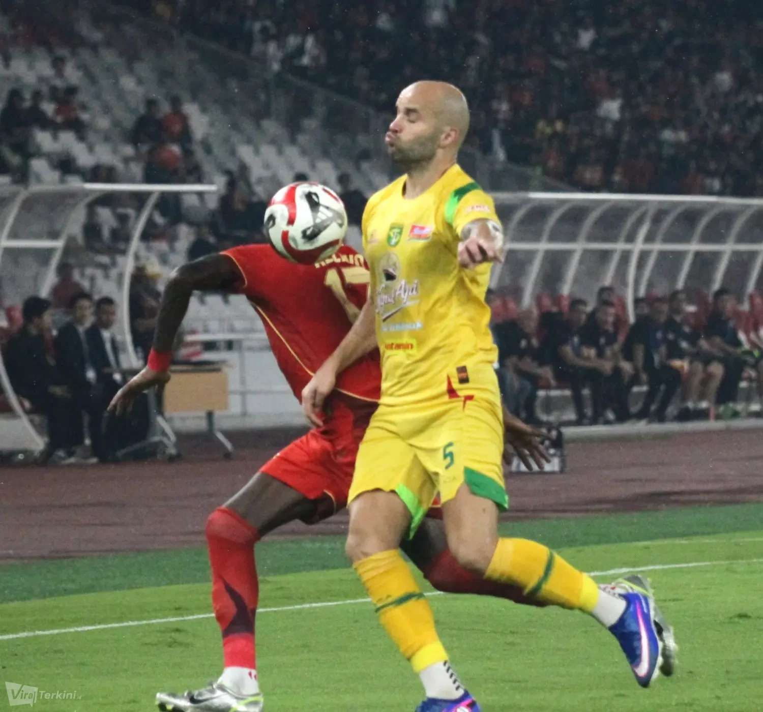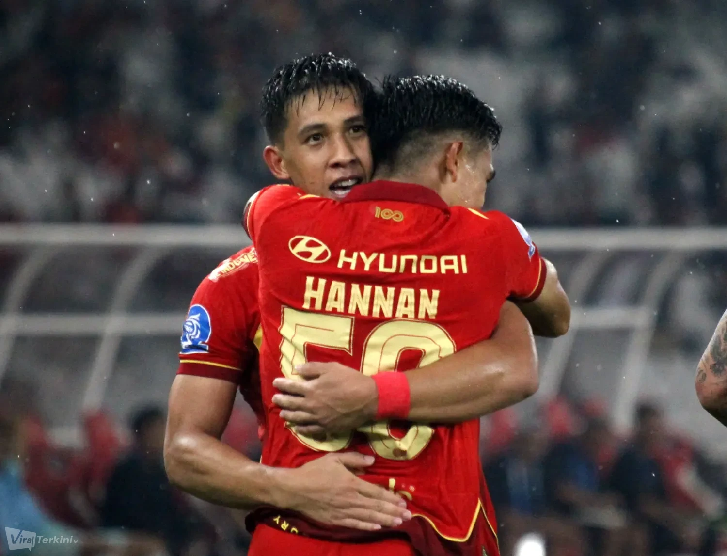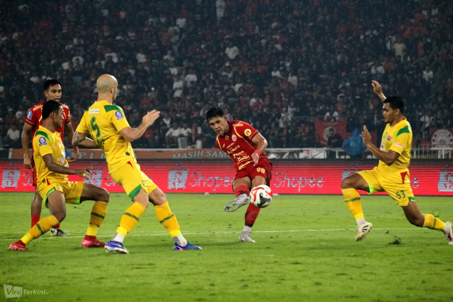Kedua pemain Persija yang mencetak gol ke gawang Persebaya yakni Allano Brendon De Souza Lima dan Eksel Timothy Joseph Runtukahu di Stadion GBK Senayan Jakarta, Sabtu (11/04) malam. Foto : Viralterkini.id/MAK Viralterkini.id, Jakarta – Persija Jakarta menunjukkan performa impresif saat menaklukkan Persebaya Surabaya dengan melumat dengan skor telak 3-0 dalam lanjutan pekan ke-27 Super League 2025/2026 di Stadion GBK Senayan Jakarta,Sabtu (11/4).