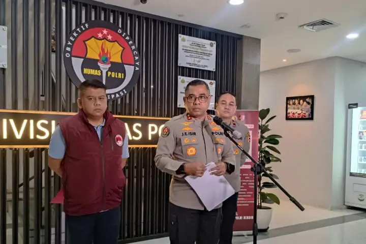 Kadivhumas Polri, Irjen Johnny Eddizon Isir saat menyampaikan kasus narkotika yang menjerat eks Kapolres Bima, AKBP Didik Putra Kuncoro di Gedung Divisi Humas Polri, Jakarta, Minggu (15/2/2026). Kredit Foto: Ryan Iqbal/kumparan Kepala Divisi Humas Polri, Irjen Johnny Eddizon Isir, menyatakan bahwa polisi sedang memburu bandar narkoba berinisial E yang terkait dengan kasus eks Kapolres Bima Kota, AKBP Didik Putra Kuncoro.