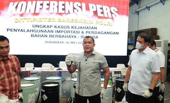 Bareskrim Polri Bongkar Perdagangan Ilegal Sianida di Surabaya dan Pasuruan, Foto : Humas Polri Viralterkini.id, Surabaya – Direktorat Tindak Pidana Tertentu (Dittipidter) Bareskrim Polri berhasil mengungkap kasus perdagangan ilegal sianida di dua lokasi, di Jawa Timur, yakni di Surabaya dan Pasuruan.