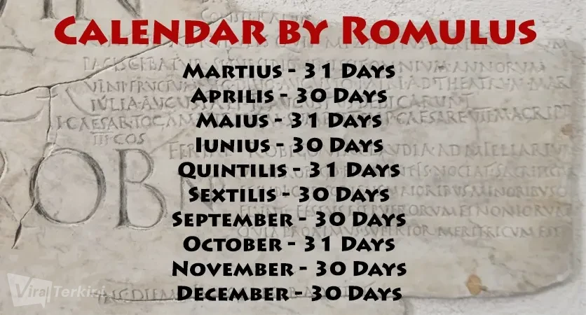 Yang menarik, tahun dimulai pada bulan Maret (Martius), yang dinamai dari dewa perang Romawi, Mars. Kalender ini berlanjut hingga bulan Desember, yang menandai masa panen di wilayah Roma.