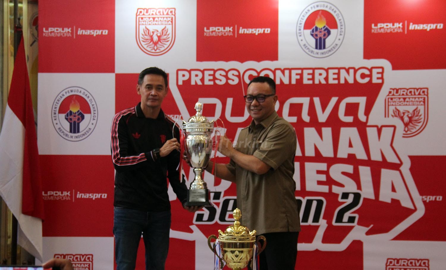 Ferry Y. Kono, Direktur LPDUK Kemenpora dan Doni Setiabudi, Direktur PT Bola Indonesia Mandiri saat Press Conference diadakan di kantor Menpora pada hari Jumat, 07 Maret 2025 pada pukul 14.00 – 15.00 wib. Foto : Viralterkini.id/Mohammad Ary K Viralterkini.id, Jakarta – Lembaga Pengelolaan Dana Usaha dan Keolahragaan (LPDUK) Kementerian Pemuda dan Olahraga (Kemenpora), bekerja sama dengan PT. Bola Indonesia Mandiri (BIM), resmi mengumumkan penyelenggaraan Durava Liga Anak Indonesia by Inaspro Season 2.