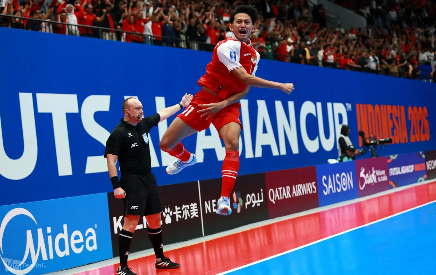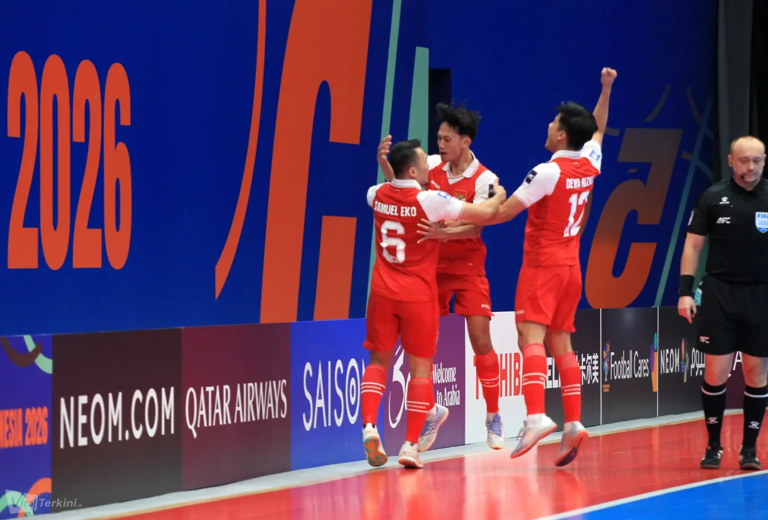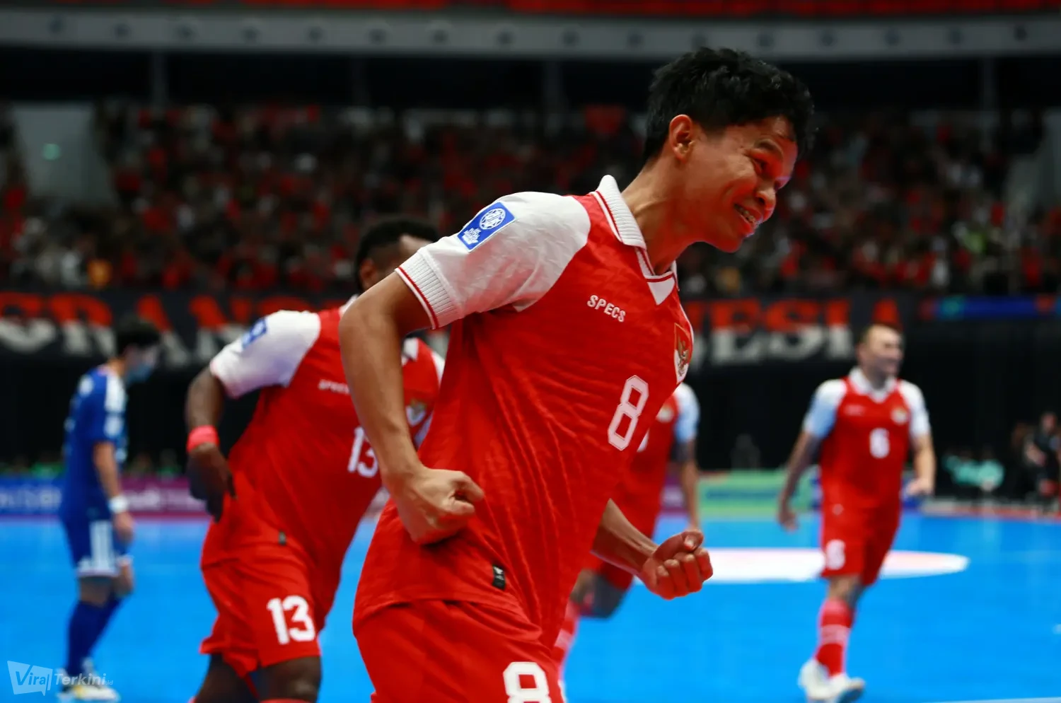 Selebrasi gol oleh Timnas Futsal Indonesia saat melawan Japan di AFC Futsal Asian Cup 2026. Foto : Viralterkini.id/MAK Viralterkini.id, Jakarta – Pertandingan semifinal antara Indonesia melawan Japan di turnamen AFC Futsal Asian Cup 2026 berakhir dengan skor 5-3 di Indonesia Arena Senayan Jakarta.