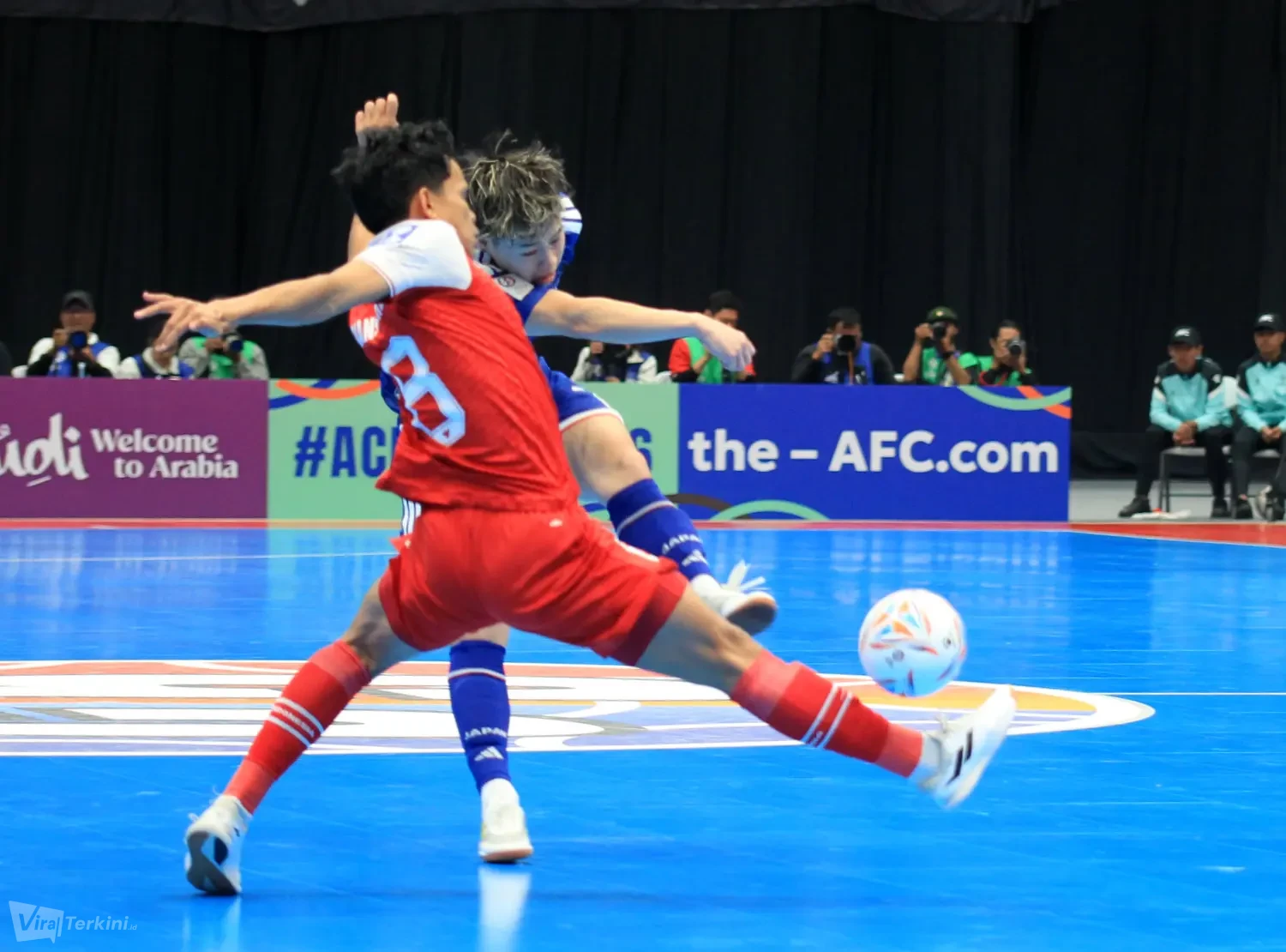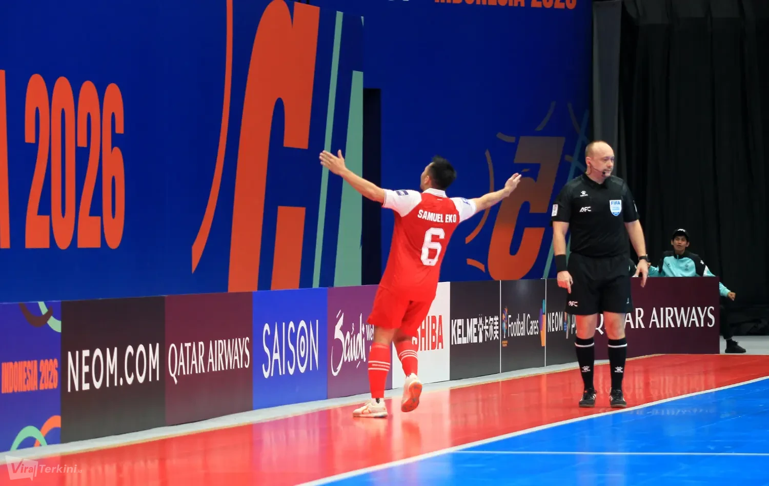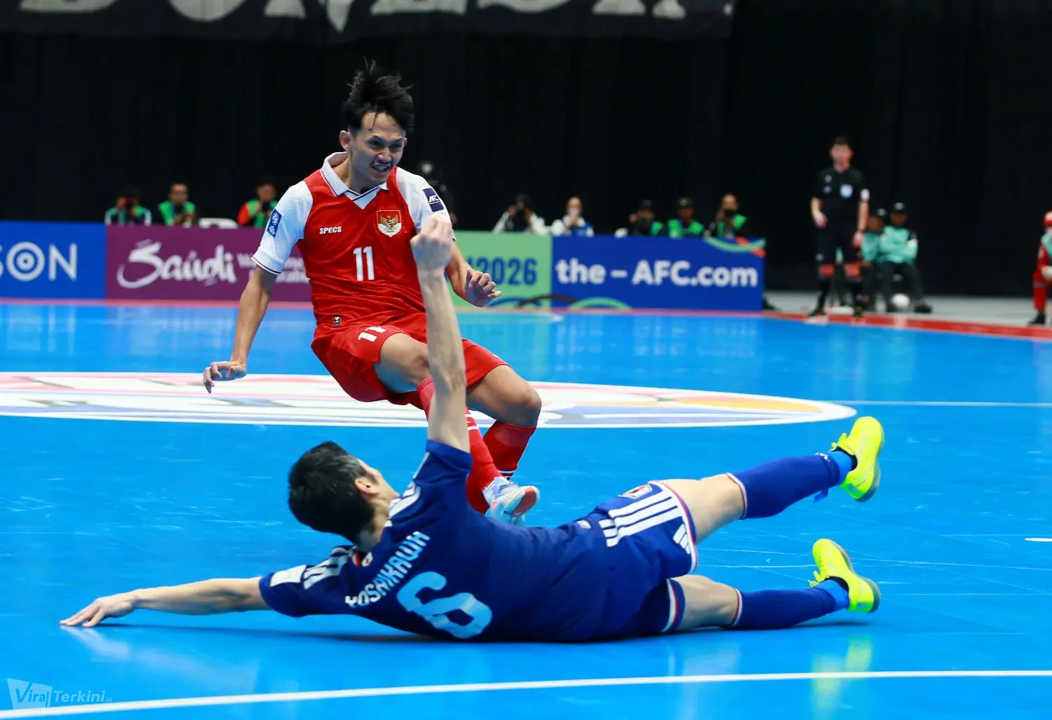 Selebrasi gol oleh Timnas Futsal Indonesia saat melawan Japan di AFC Futsal Asian Cup 2026. Foto : Viralterkini.id/MAK Viralterkini.id, Jakarta – Pertandingan semifinal antara Indonesia melawan Japan di turnamen AFC Futsal Asian Cup 2026 berakhir dengan skor 5-3 di Indonesia Arena Senayan Jakarta.
