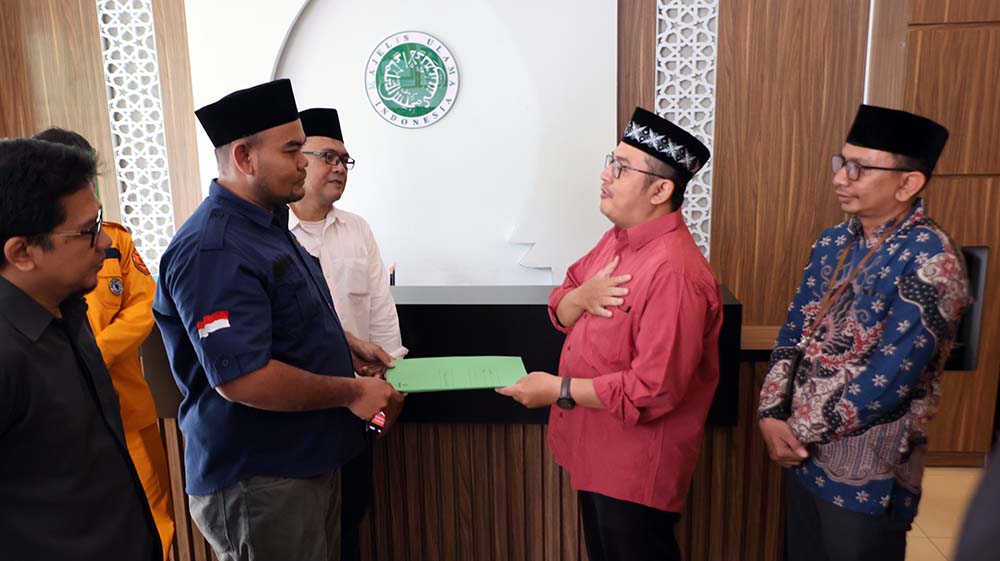 Penyerahan petisi atau pernyataan dilakukan oleh ketua Pronas Fuad Adnan kepada perwakilan MUI di kantor MUI disaksikan beberapa elemen masyarakat. Foto : SAT