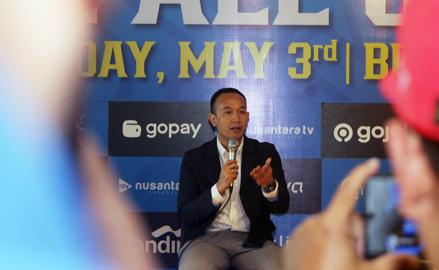 Direktur Utama IBL, Junas Miradiarsyah dalam preskon IBL GoPay All-Stars 2025 yang digelar di Senayan Park, Senayan Jakarta pada Selasa (22/4/2025). Foto : Viralterkini.id/MAK