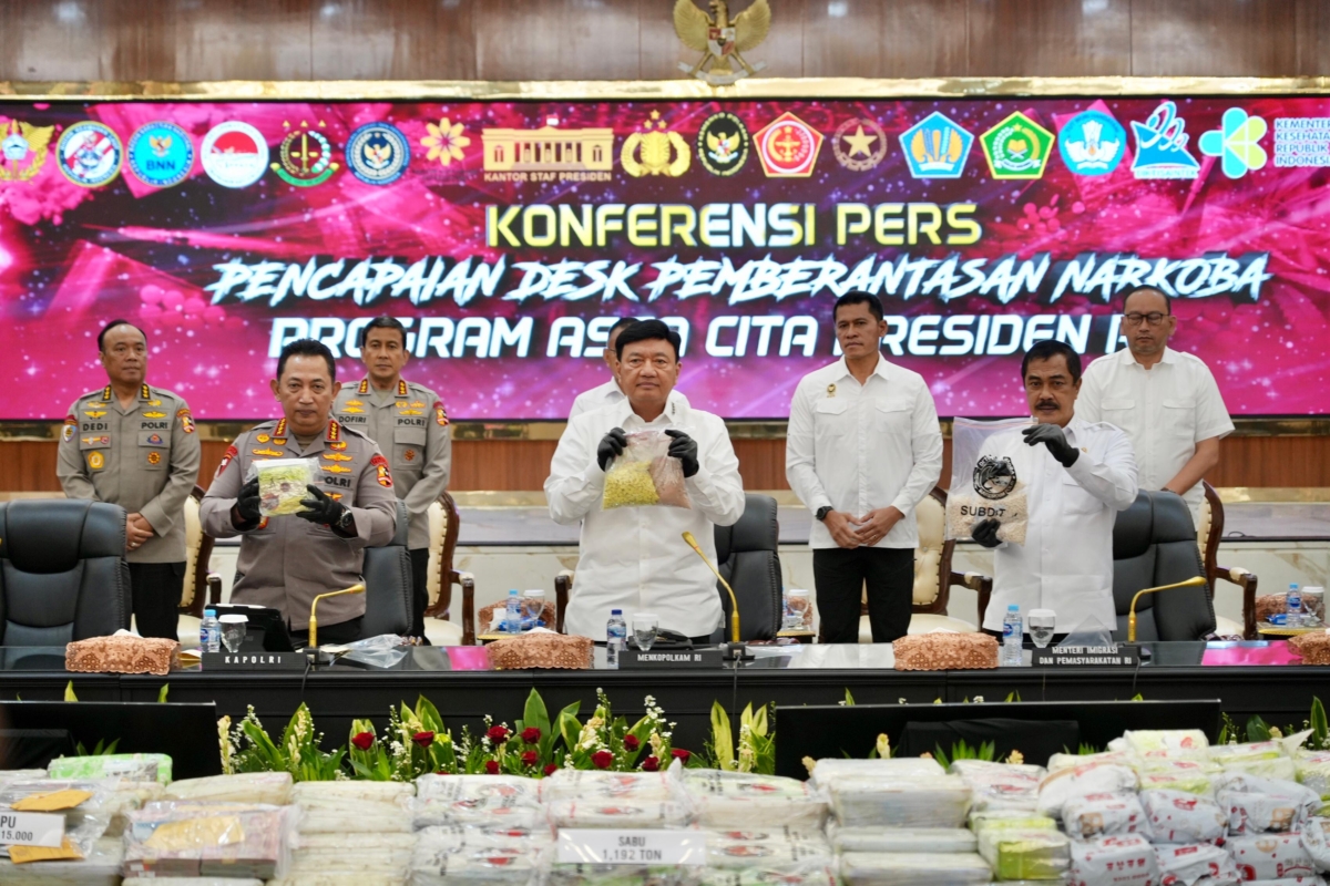 Hal tersebut dipaparkan Menko Polkam di sesi konferensi pers usai menggelar Rakor Desk Pemberantasan Narkoba di Mabes Polri, Kamis (5/12/2024).
