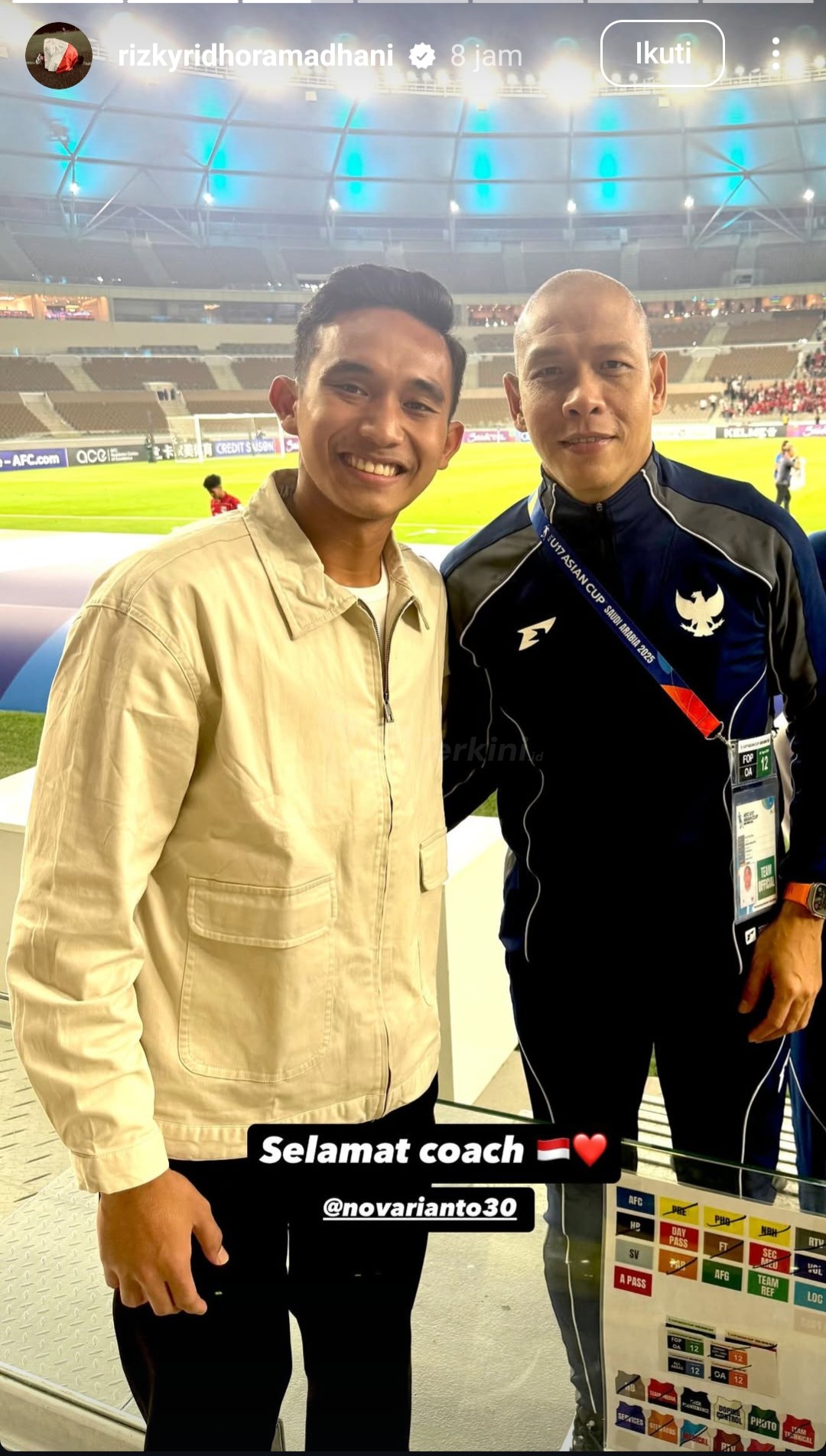 “Selamat, Coach!” tulis Ridho dalam unggahan fotonya bersama Nova Arianto. “Selamat, Capt!” lanjutnya dalam foto bersama Putu Panji.
