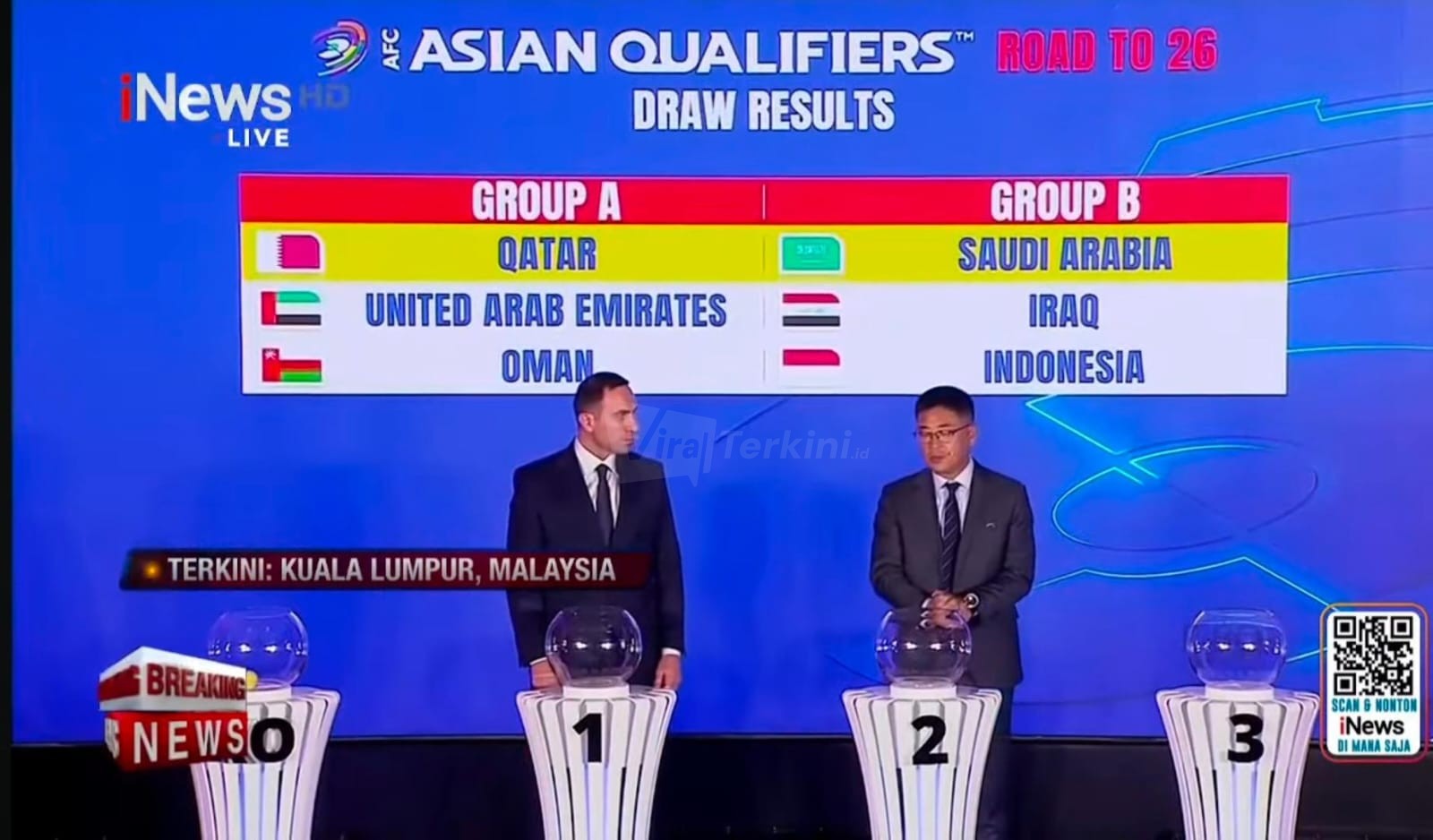 Hasil drawing Ronde 4 Kualifikasi Piala Dunia 2026 zona Asia menempatkan Timnas Indonesia di Grup B bersama Iraq dan Arab Saudi. Pengundian dilaksanakan pada Kamis (17/7/2025), di AFC House, Kuala Lumpur, Malaysia.