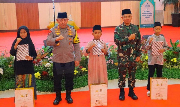 Dalam kesempatan itu diserahkan juga santunan dari Kapolri kepada anak yatim-piatu.