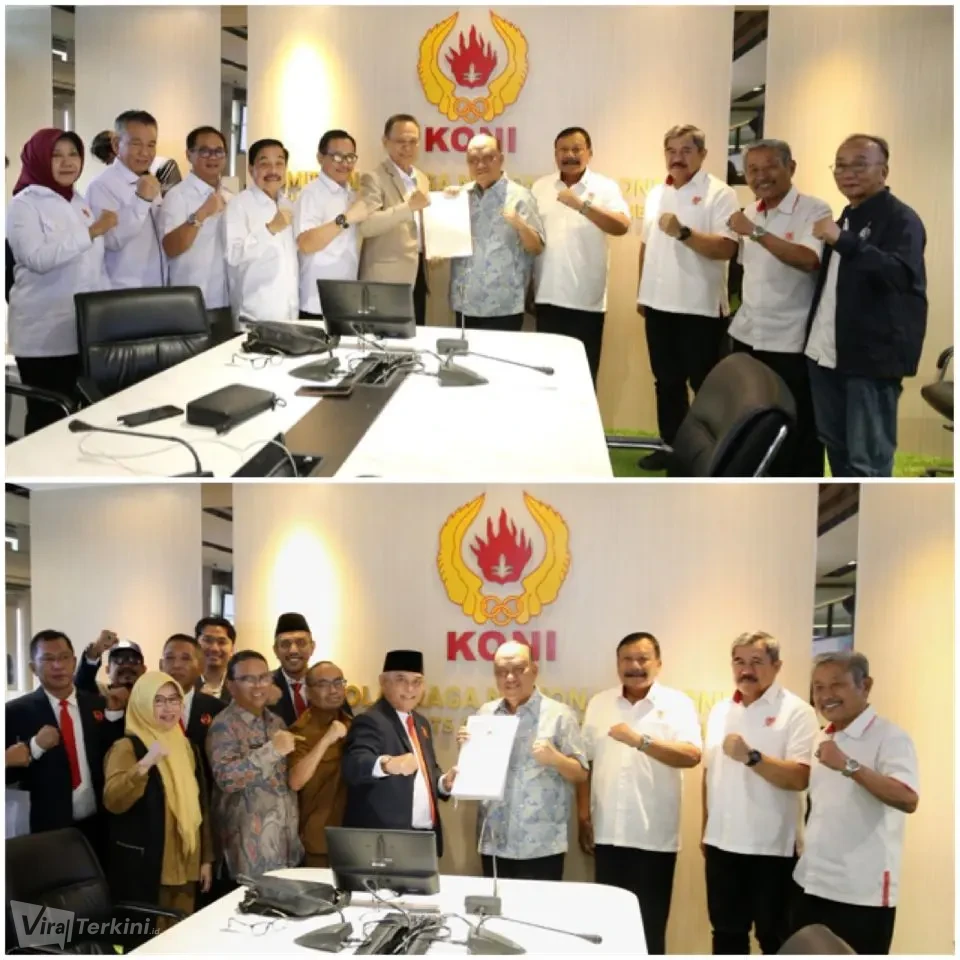 Provinsi Banten dan Lampung resmi menyerahkan dokumen persyaratan sebagai bakal calon tuan rumah Pekan Olahraga Nasional (PON) XXIII tahun 2032 kepada Komite Olahraga Nasional Indonesia (KONI) Pusat. (Foto: Dok.Koni). Viralterkini.id, Jakarta – Provinsi Banten dan Lampung resmi menyerahkan dokumen persyaratan sebagai bakal calon tuan rumah Pekan Olahraga Nasional (PON) XXIII tahun 2032 kepada Komite Olahraga Nasional Indonesia (KONI) Pusat. Penyerahan dokumen tersebut dilakukan dalam audiensi yang berlangsung di Ruang Rapat Lukman Niode, Kantor KONI Pusat, Jakarta, Selasa (10/3/2026).