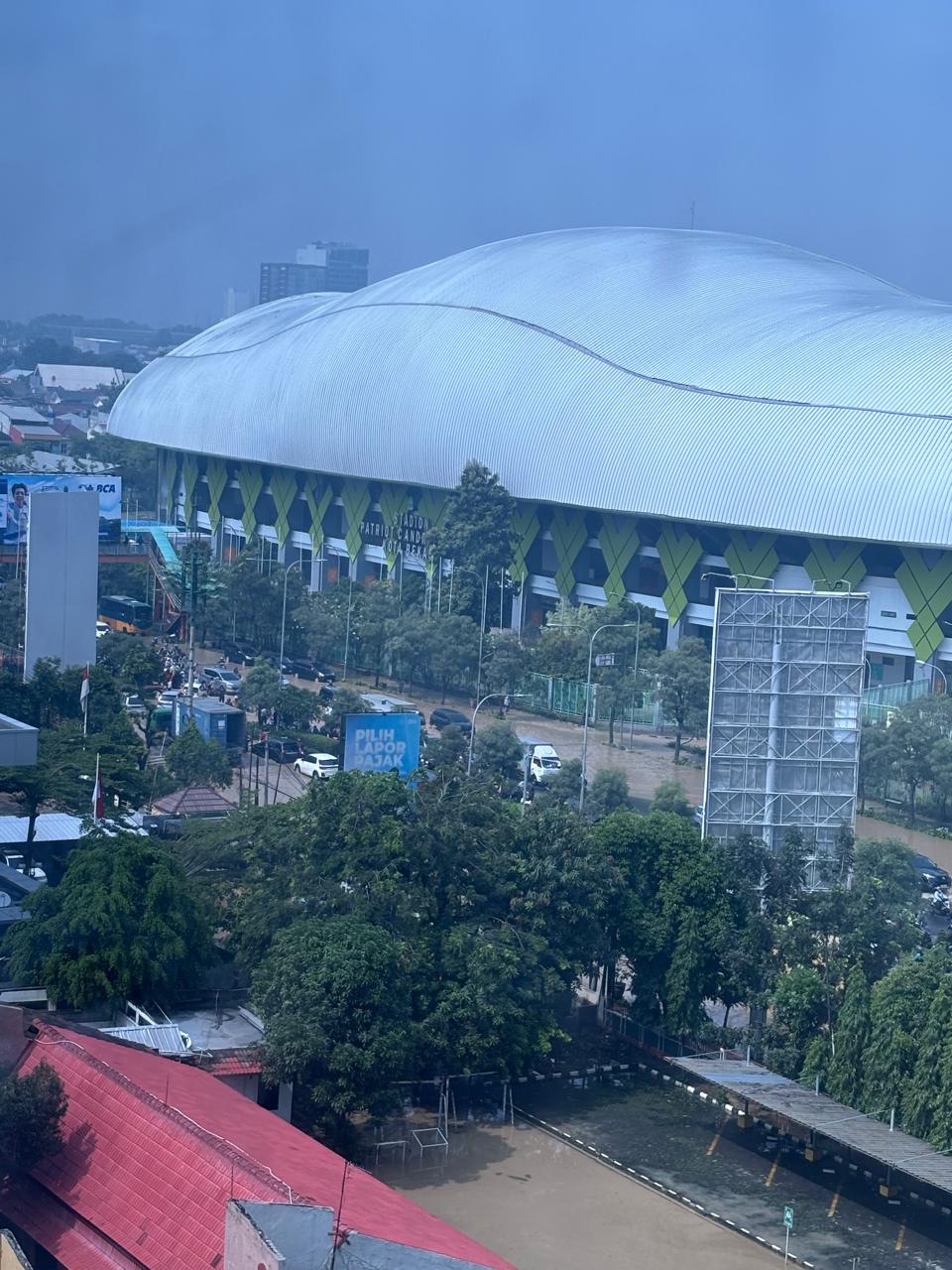 Terlihat banjir di Stadion Patriot Chandrabaga Bekasi, Selasa (04/03). Foto : ist Viraterkini.id, Bekasi – Pertandingan pekan ke-25 Liga 1 2024/2025 antara Persija vs PSIS di Stadion Patriot Candrabhaga, Bekasi, yang direncanakan berlangsung pada Selasa (4/3/2025), pukul 20.30 WIB, resmi ditunda.