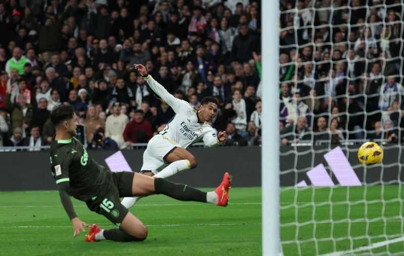 Vinicius menggiring bola di sisi kanan pertahanan Girona memasuki kotak penalti sambil melewati tiga pemain lawan. Bola kemudian disepak ke gawang tapi ditepis kiper Gazzaniga, namun bola muntah disambar oleh Bellingham.