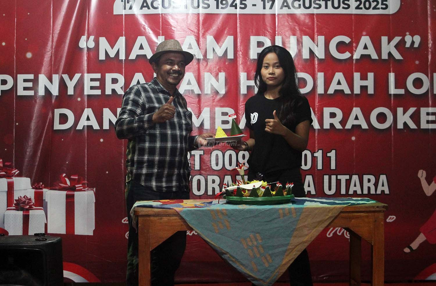Semangat kemerdekaan yang membara pada perayaan HUT ke-80 RI tahun ini ditutup dengan agenda lomba karaoke, penyerahan hadiah pemenang lomba dan doorprise untuk warga yang hadir saat malam puncak.