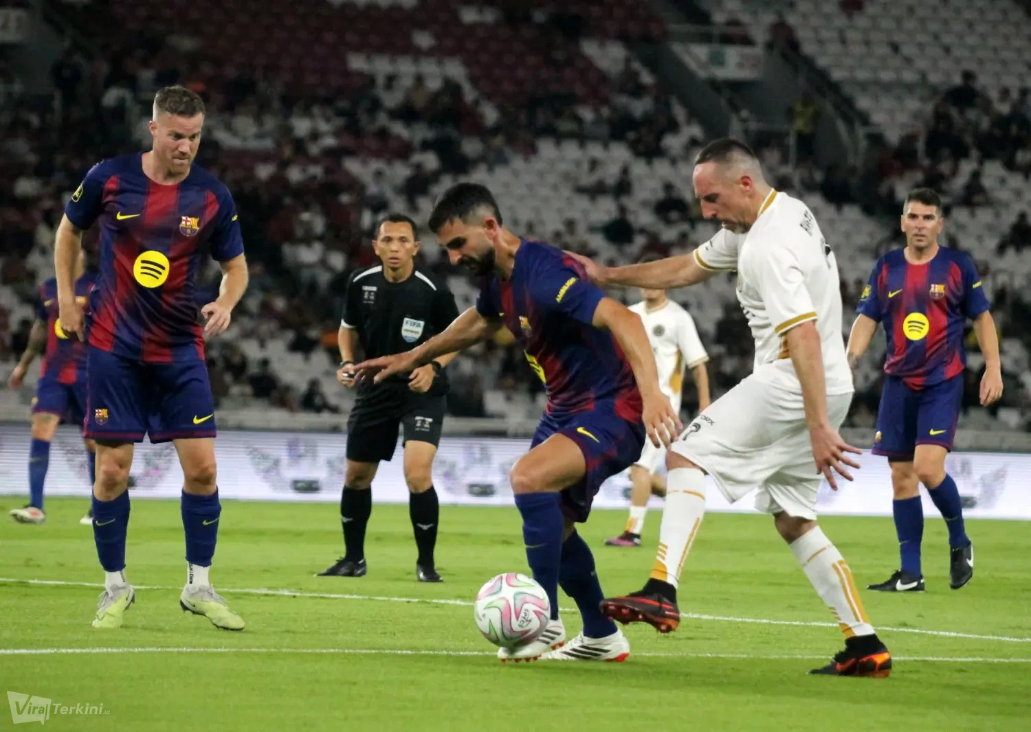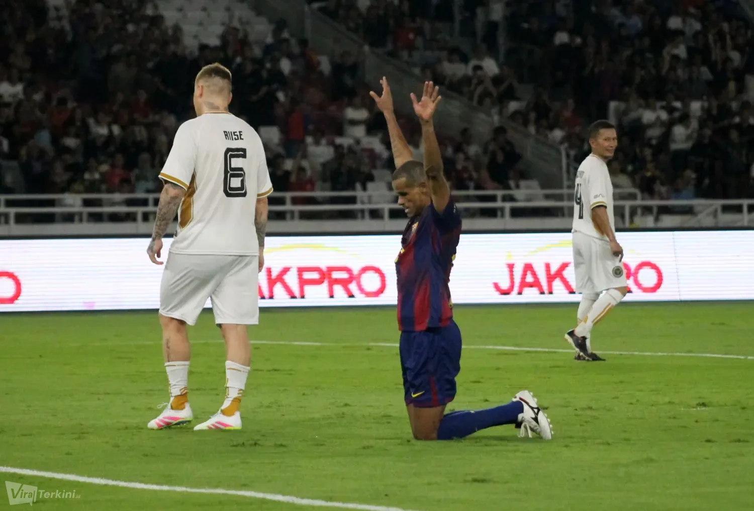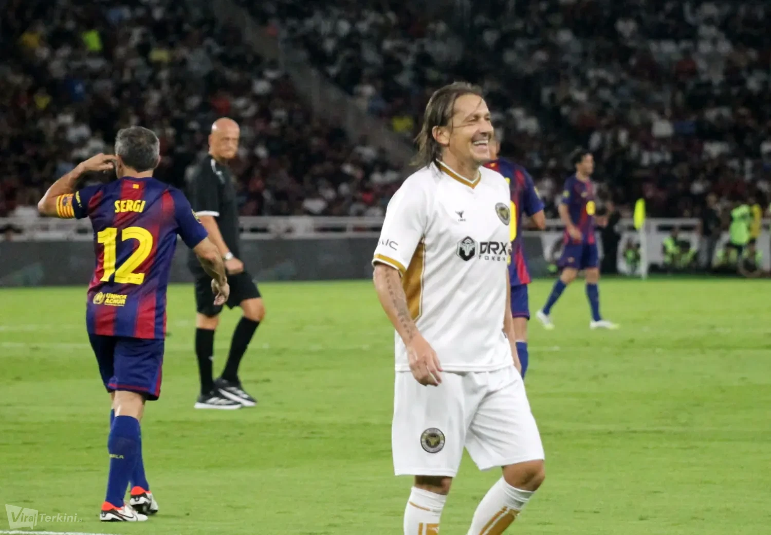 Viralterkini.id, JAKARTA – Momen terindah Barcelona Legends meraih kemenangan meyakinkan 3-0 atas DRX World Legends dalam ajang Clash of Legends Jakarta 2026 yang digelar di Stadion Utama Gelora Bung Karno, Sabtu malam (18/4).