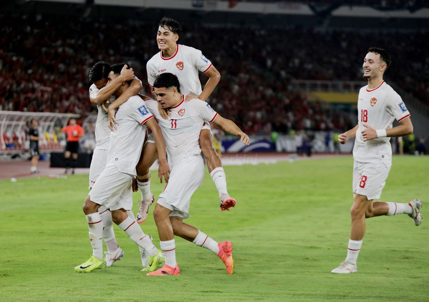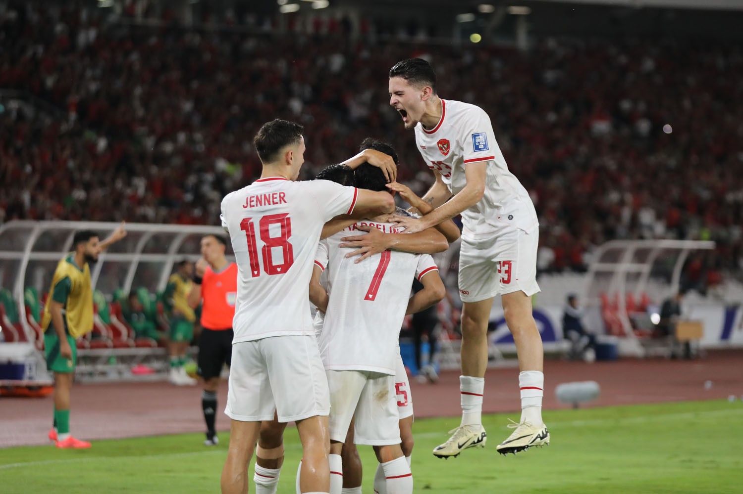 Viralterkini.id, Jakarta – Moment Timnas meraih kemenangan perdana di Kualifikasi Piala Dunia 2026 zona Asia Grup C. Jay Idzes dkk menaklukkan Arab Saudi, 2-0, dalam pertandingan yang berlangsung di Stadion Utama Gelora Bung Karno, Senayan, Jakarta, Selasa (19/11).