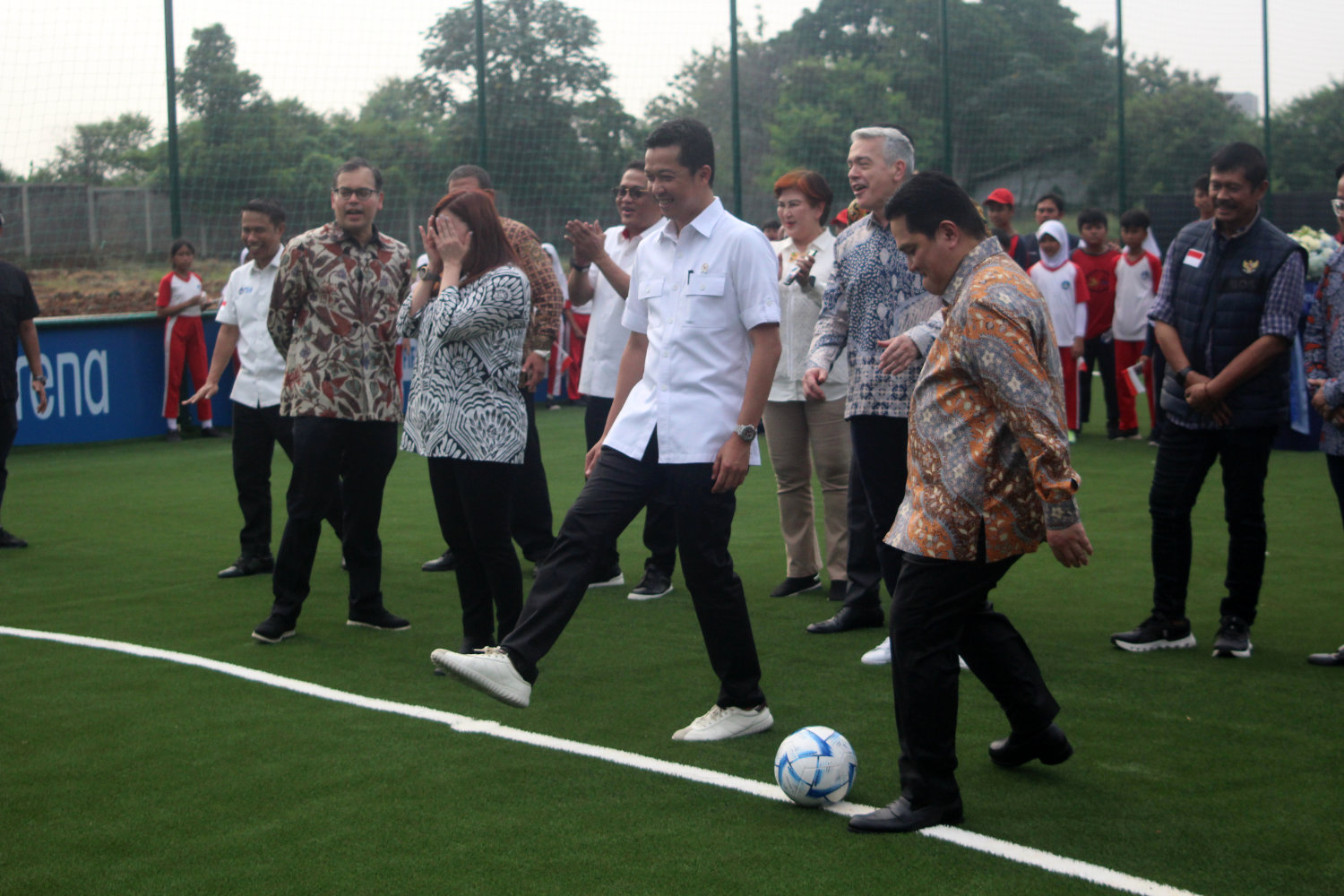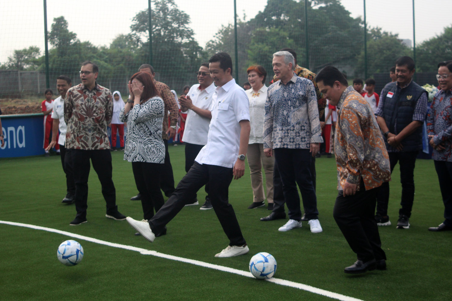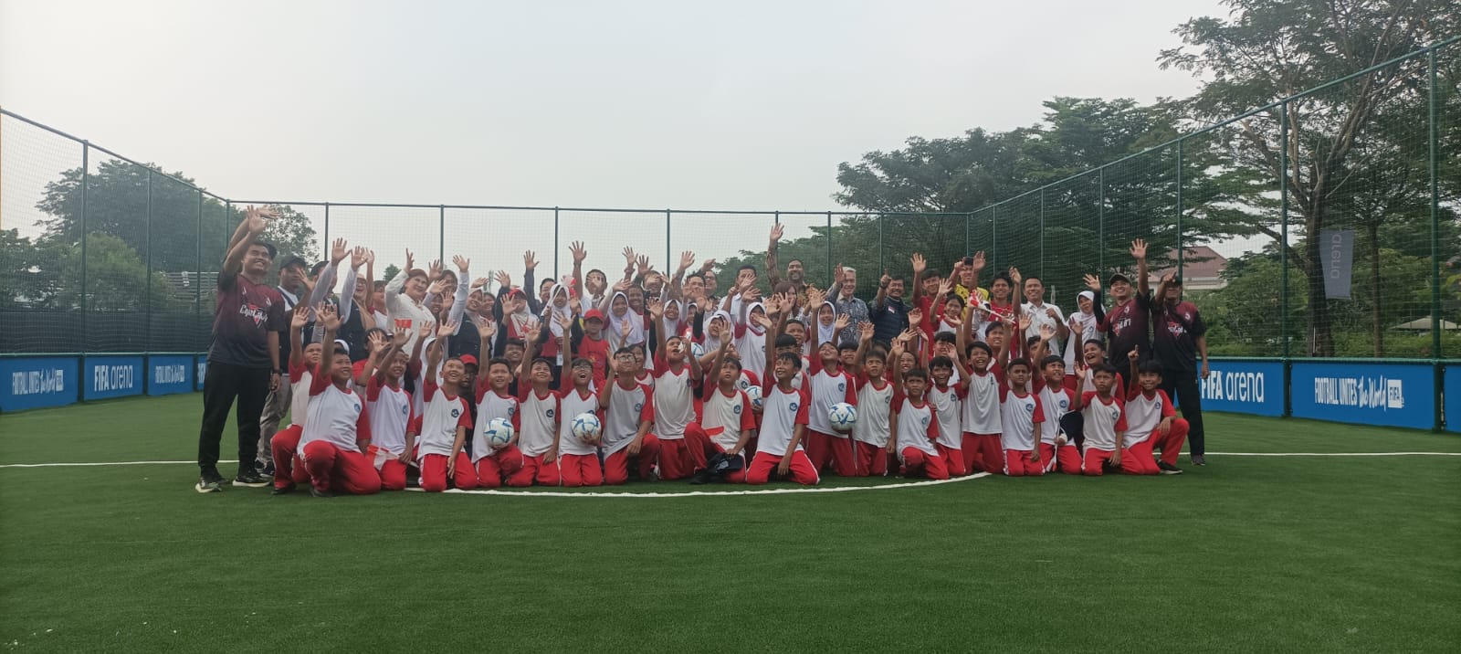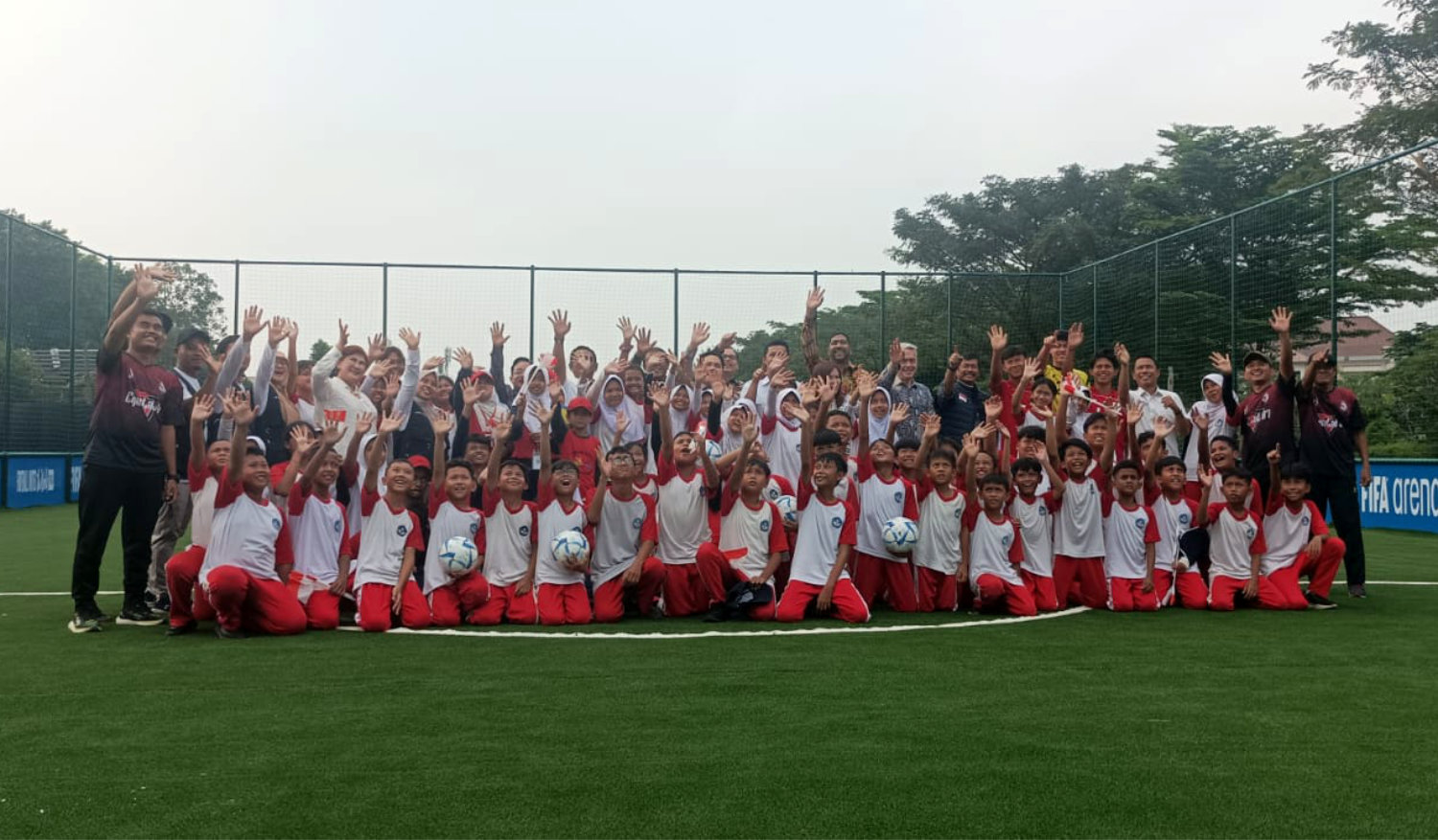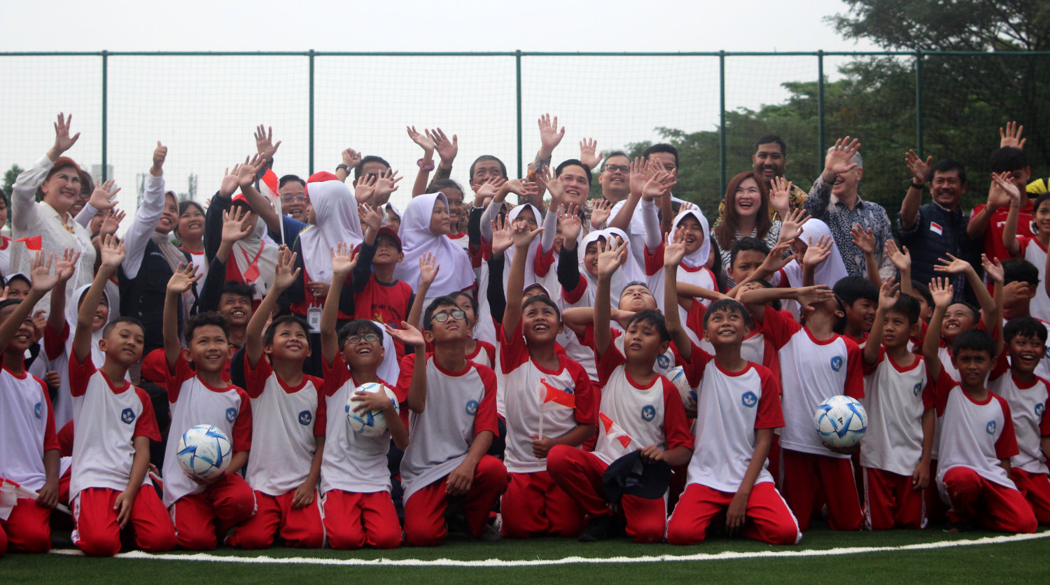 Moment saat peluncuran perdana Program Football for Schools FIFA di Indonesia di Ciputat, Jakarta, Selasa (6/5).