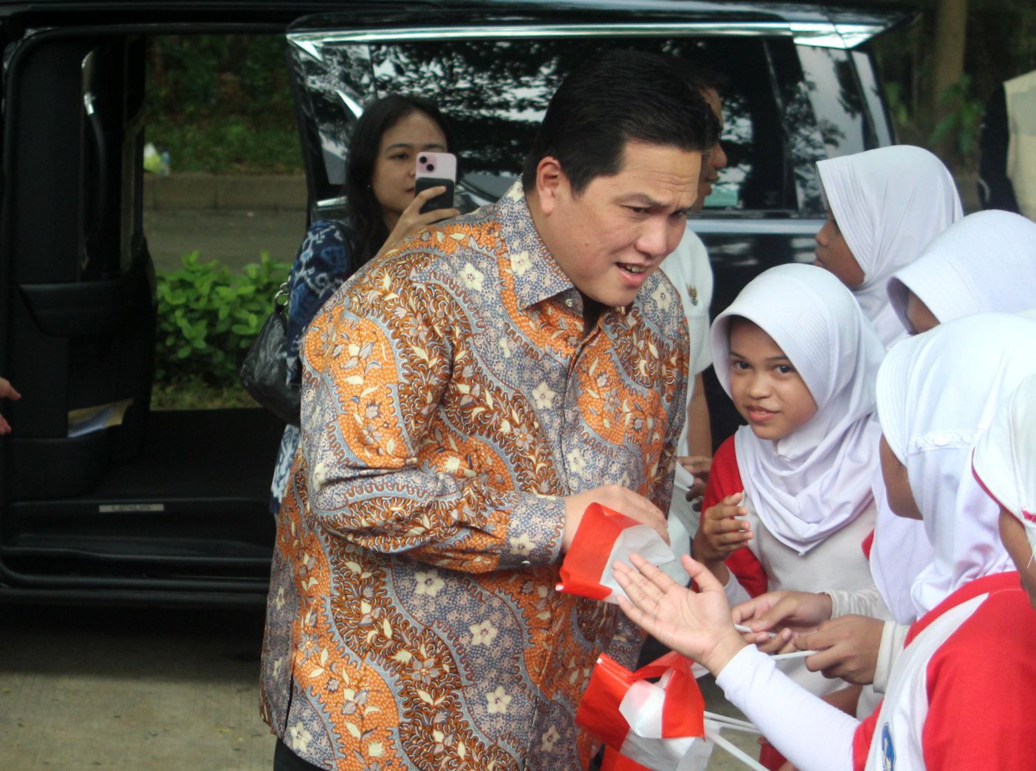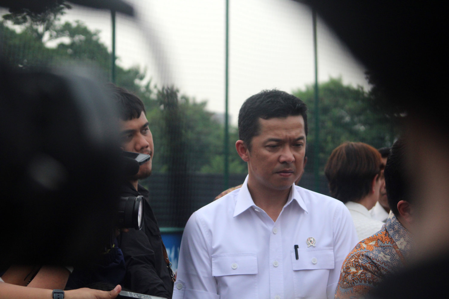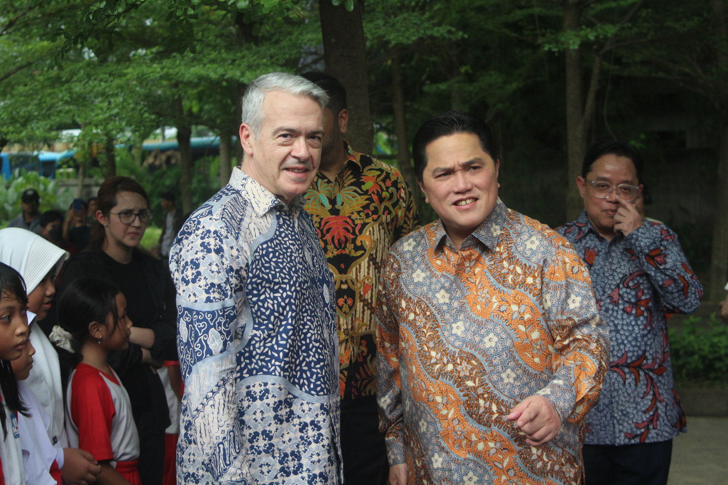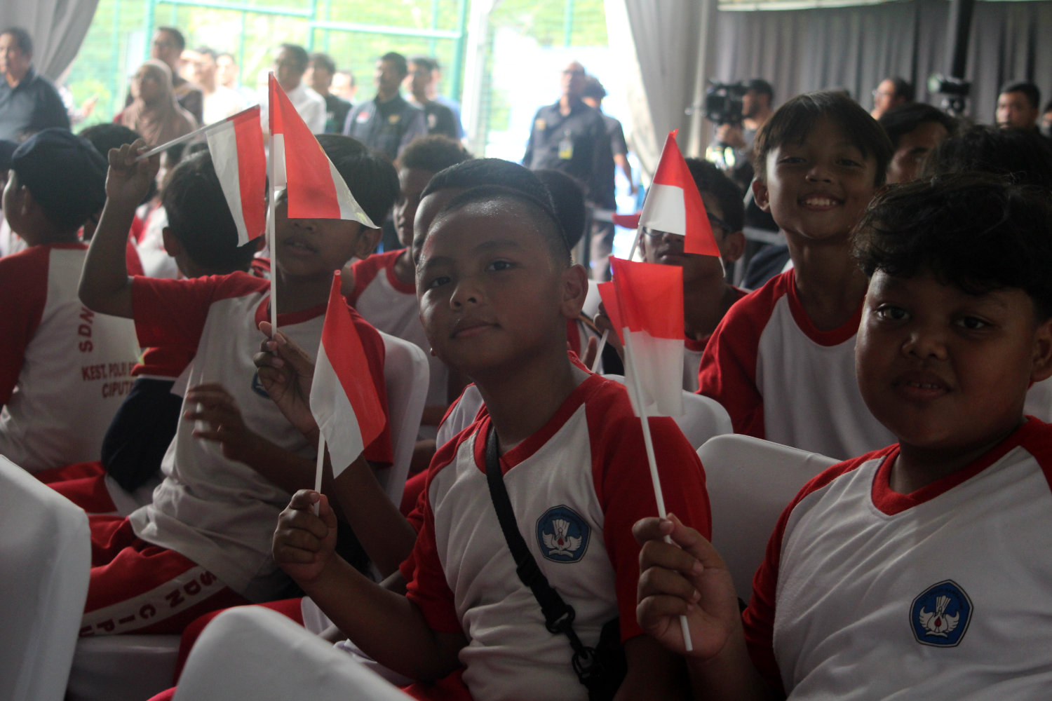 Moment saat peluncuran perdana Program Football for Schools FIFA di Indonesia di Ciputat, Jakarta, Selasa (6/5).