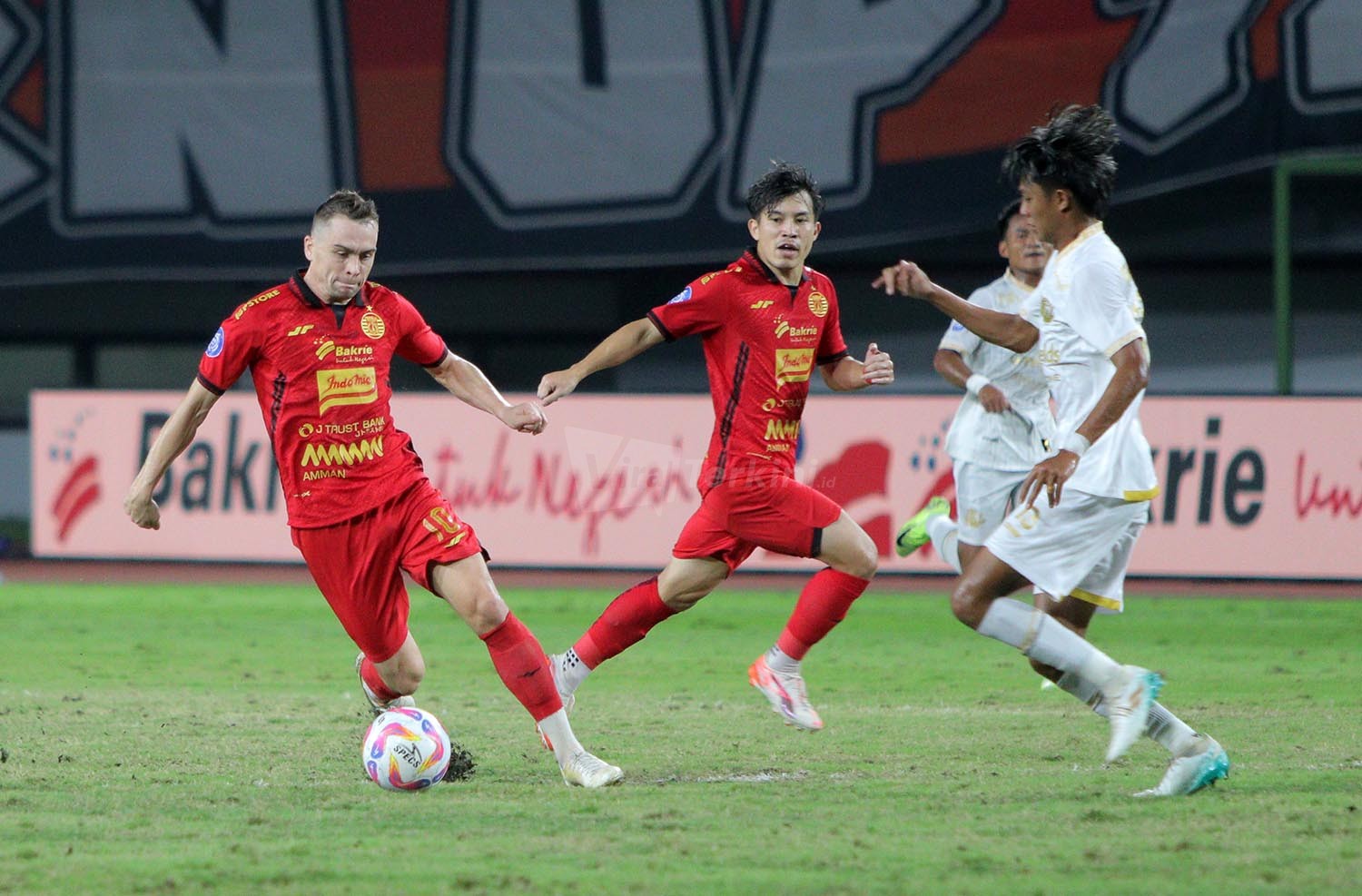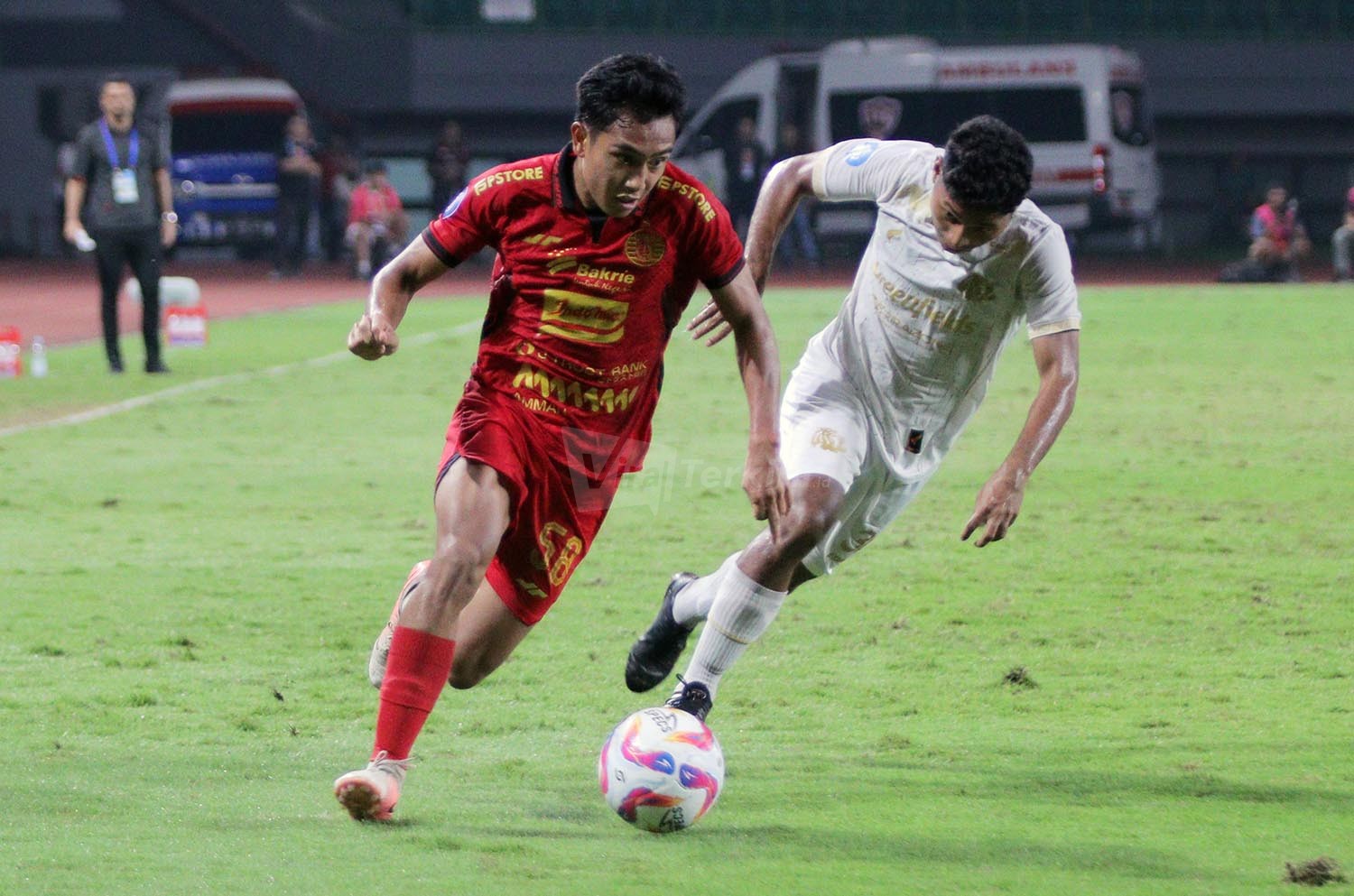 Viralterkini.id, Bekasi -Moment seru pada pekan ke-26 antara Macan Kemayoran melawan Singo Edan di Stadion Patriot Chandrabaga, Bekasi, Minggu, 9 Maret 2025. Persija harus mengakui keunggulan Arema FC 1-3 dilaga yang tidak seimbang ini.