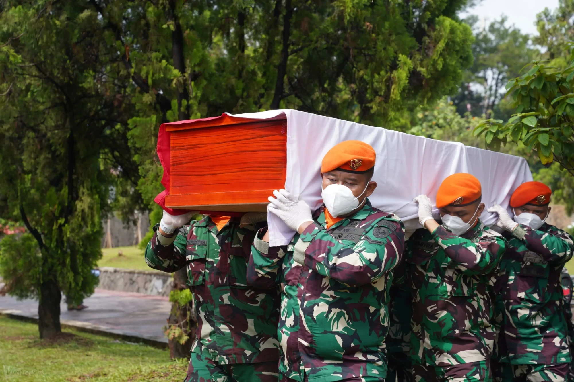 Prosesi pemindahan yang berlangsung mulai pukul 10.00 WIB ini dilaksanakan dengan upacara militer penuh khidmat oleh Markas Besar TNI melalui Garnisun Tetap I/Jakarta, Taman Makam Pahlawan Nasional Utama (TMPNU) Kalibata, Jakarta Selatan. Sabtu (17/01). Foto : ist Viralterkini.id, JAKARTA – Negara memberikan penghormatan tertinggi kepada salah satu putra terbaik bangsa asal Halmahera Tengah, Marsekal Muda TNI (Purn) Dr. H. Abdul Gafur Tengku Idris. Pada Sabtu (17/1/2026), kerangka jenazah Tokoh Nasional tersebut resmi dipindahkan dari tempat pemakaman semula di TPU Pondok Ranggon ke Taman Makam Pahlawan Nasional Utama (TMPNU) Kalibata, Jakarta Selatan.