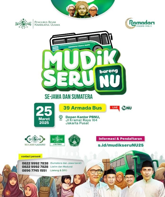 Viralterkini.id, Jakarta — Pengurus Besar Nahdlatul Ulama (PBNU) menggelar program “Mudik Seru, Bareng NU” sebagai bentuk kepedulian kepada masyarakat dalam mendukung kelancaran arus mudik Lebaran 2025.