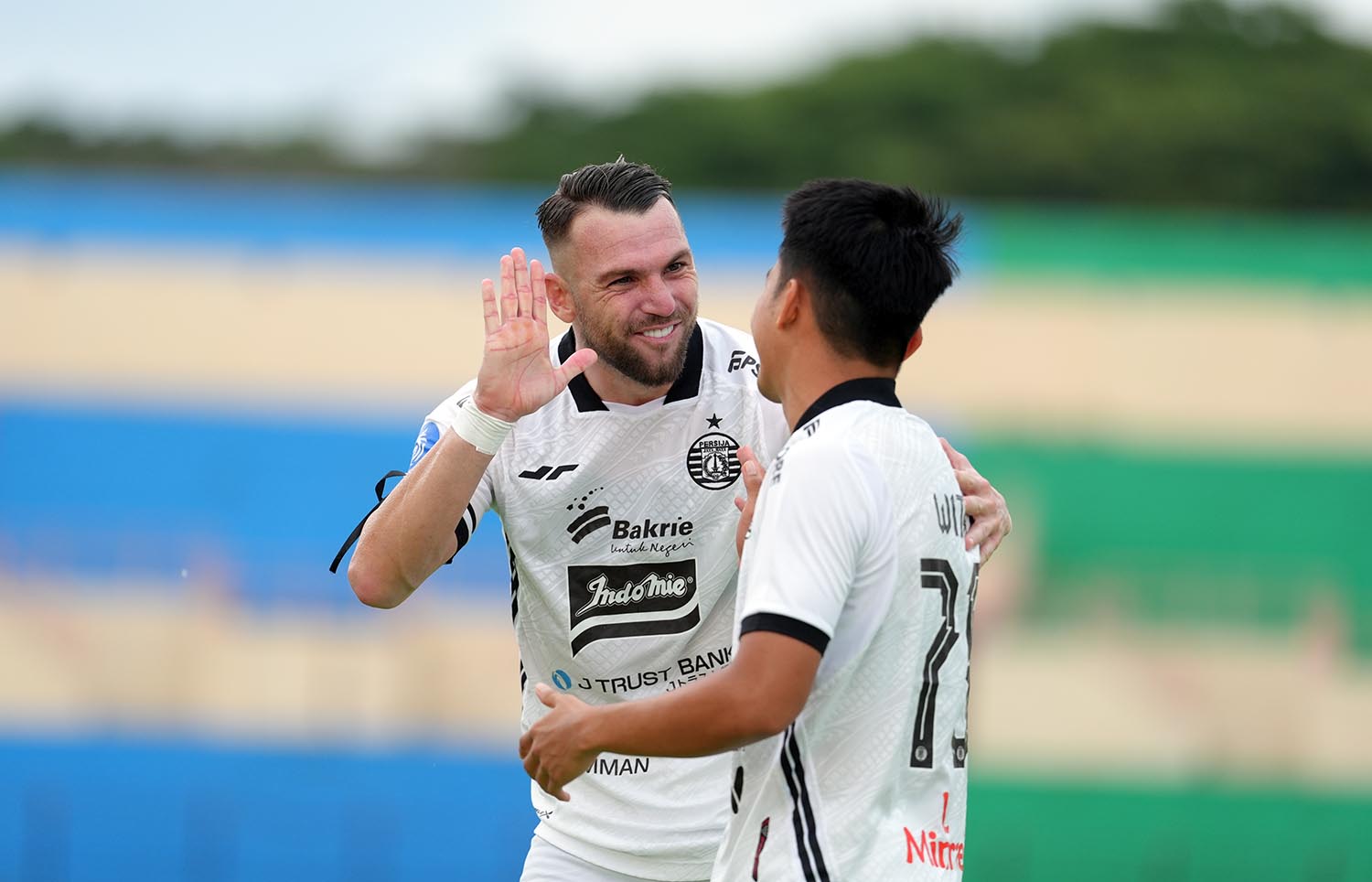 Selebrasi pemain Persija, Marco Simic saat melawan PS Barito Putera. Foto : Persija Viralterkini.id, Bantul – Duel Barito Putera vs Persija Jakarta pada pekan ke-18 Liga 1 yang digelar di Stadion Sultan Agung, Bantul, Jumat, 10 Januari 2025, berakhir dengan skor 2-3.