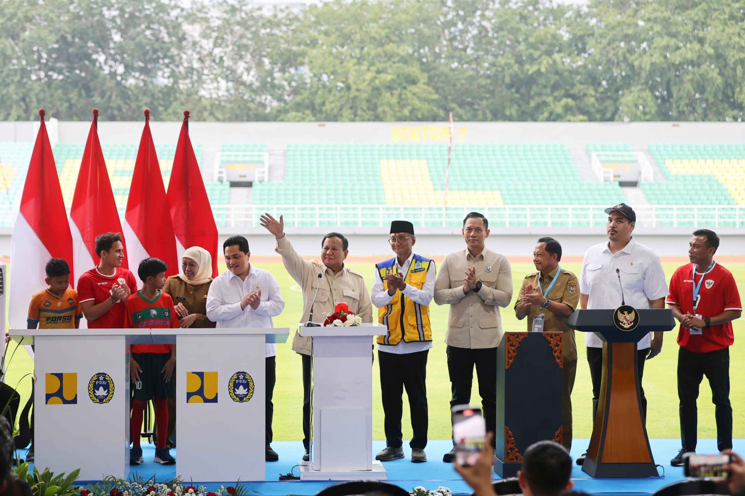 Presiden Republik Indonesia, Prabowo Subianto, meresmikan 17 stadion sepak bola yang telah direnovasi.