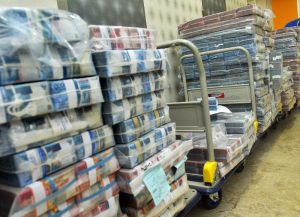 Petugas menata uang kartal di Pooling Cash Bank Mandiri, Jakarta, Selasa (9/7).