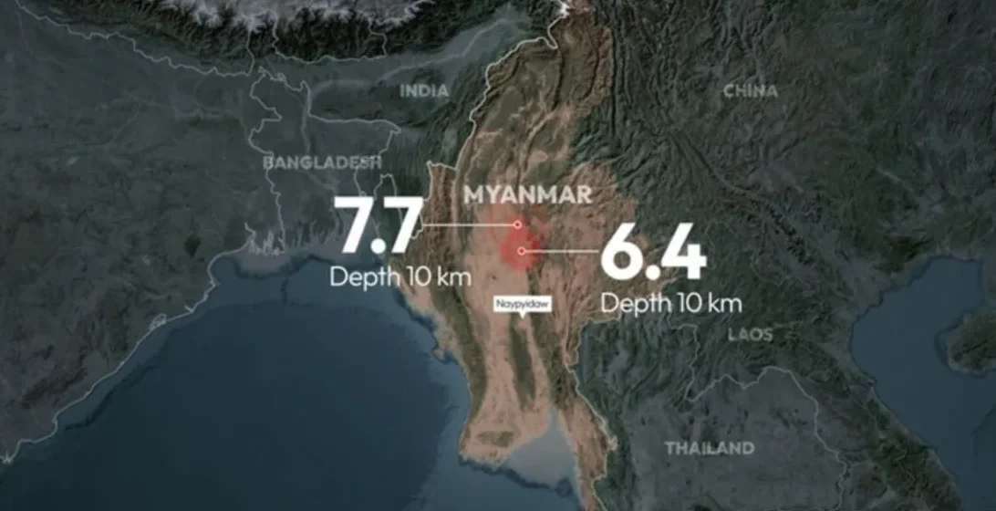 gempa bumi berkekuatan 7,7 mengguncang Myanmar. Foto : ist Viralterkini.id – Setidaknya 80 orang tertimbun reruntuhan gedung yang runtuh di Bangkok akibat gempa bumi yang berpusat di Myanmar, demikian dilaporkan surat kabar The Nation pada Jumat (28/3), mengutip Wakil Perdana Menteri Thailand Phumtham Wechayachai.