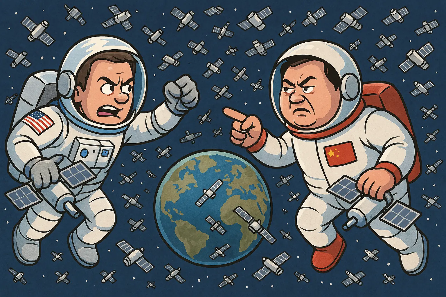 Ilustrasi: Viralterkini.id Viralterkini.id – Kompetisi teknologi ruang angkasa antara Amerika Serikat dan Cina semakin intensif, terutama di orbit rendah Bumi (Low Earth Orbit/LEO).
