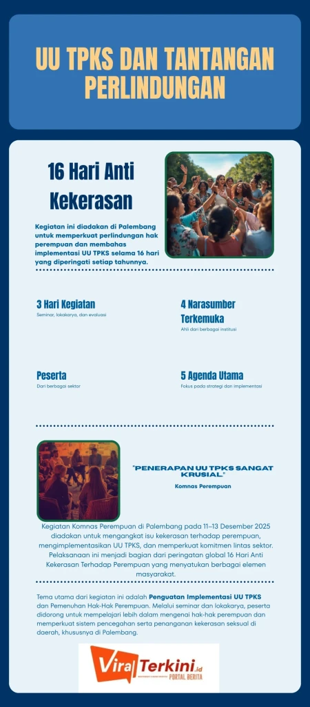 Viralterkini.id-Komisi Nasional Anti Kekerasan terhadap Perempuan (Komnas Perempuan) menyelenggarakan rangkaian kegiatan strategis di Palembang, Sumatera Selatan, pada 11–13 Desember 2025. Kegiatan ini merupakan bagian dari peringatan Kampanye 16 Hari Anti Kekerasan terhadap Perempuan (16HAKtP) yang rutin digelar setiap tahun.