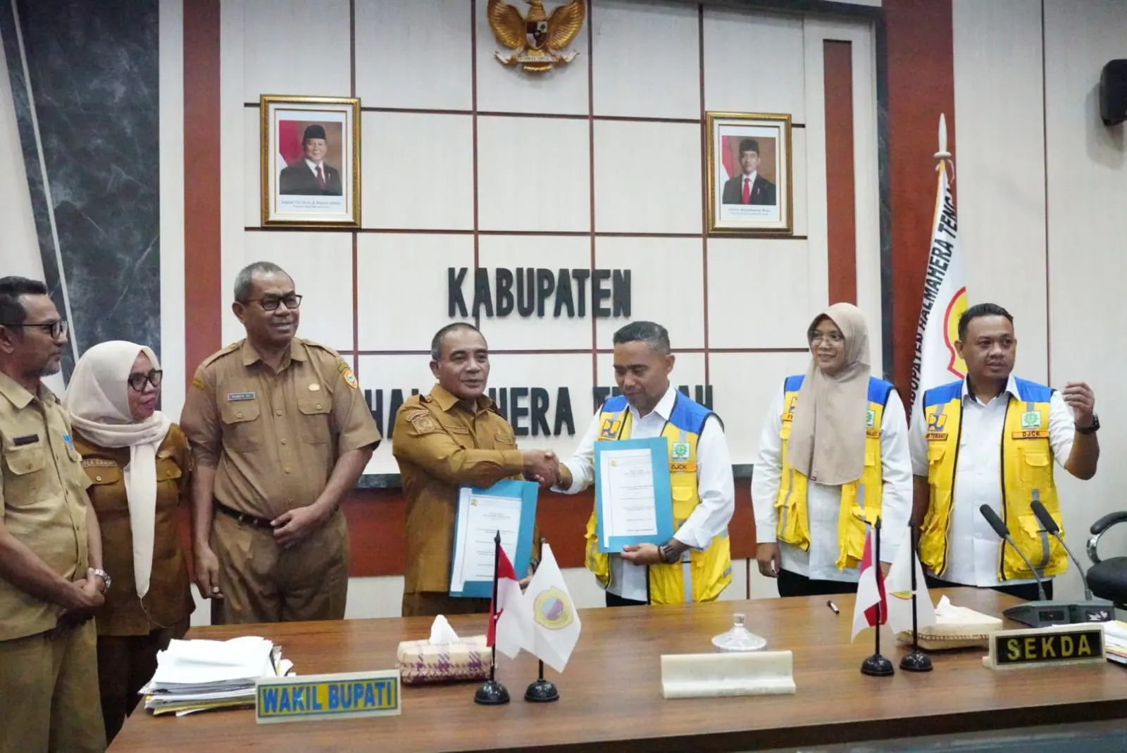 Wabup Halteng, Ahlan Djumadil, menandatangani perjanjian pengelolaan sementara Kawasan Strategis Weda Tengah, Senin (9/2/2026). Foto: dok. Kominfo Halteng